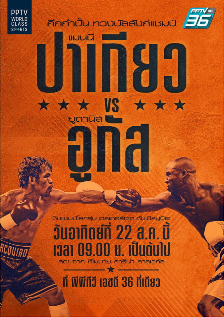 “ปาเกียว”VS“อูกัส”ยิงสดผ่าน PPTV อาทิตย์ที่ 22 ส.ค.นี้